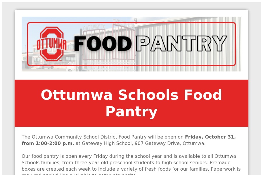 Ottumwa Schools Food Pantry           The Ottumwa Community School